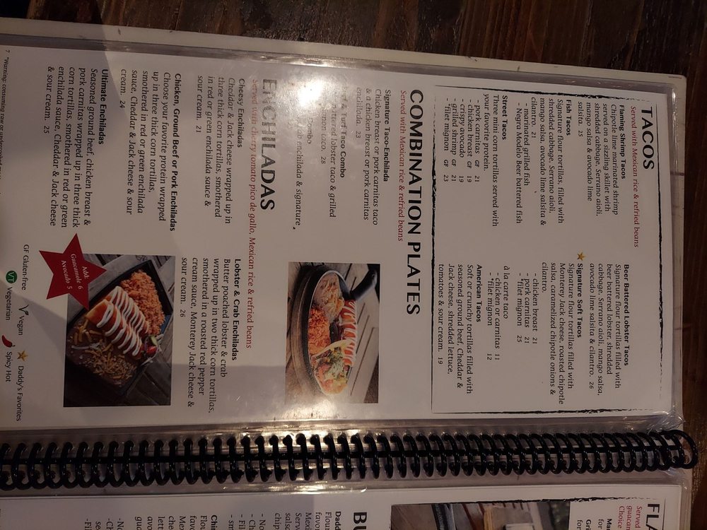 Lobster and crab enchilada and signature fish taco. Served with Mexican rice and refried beans.